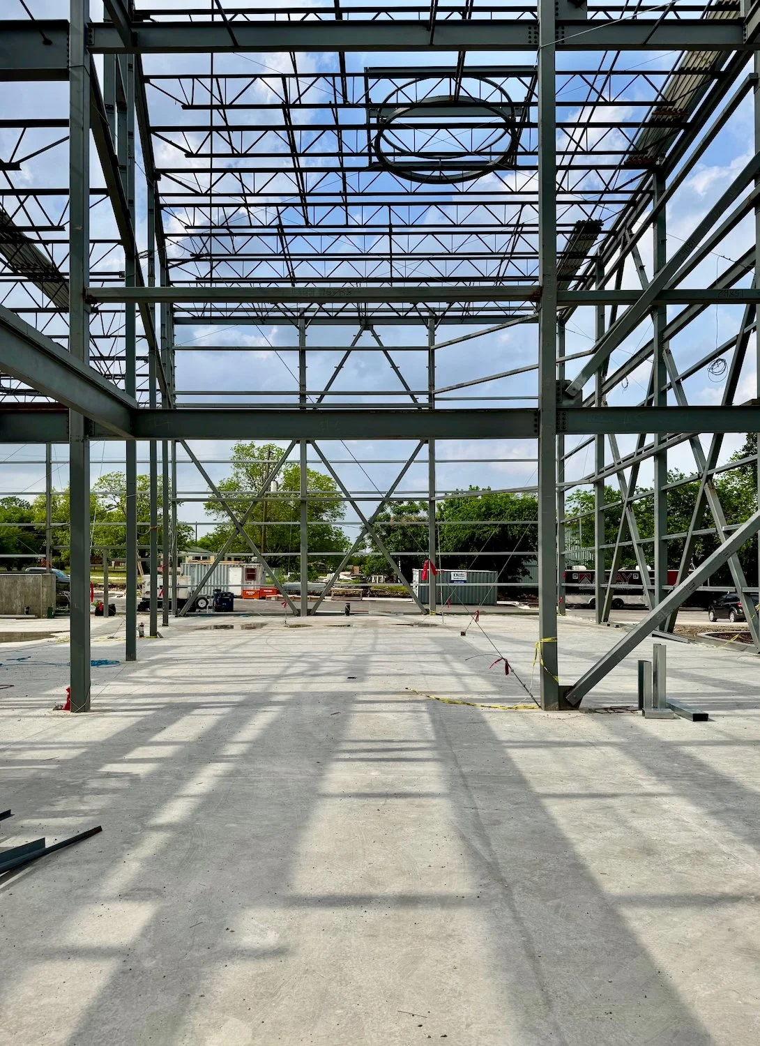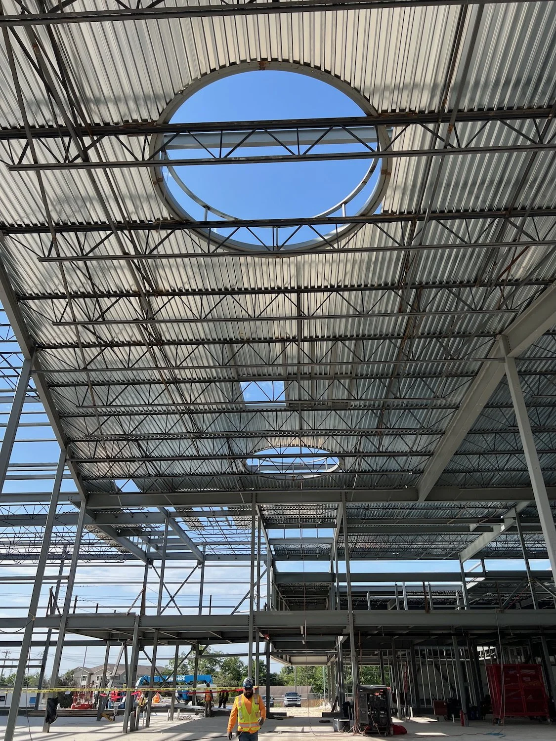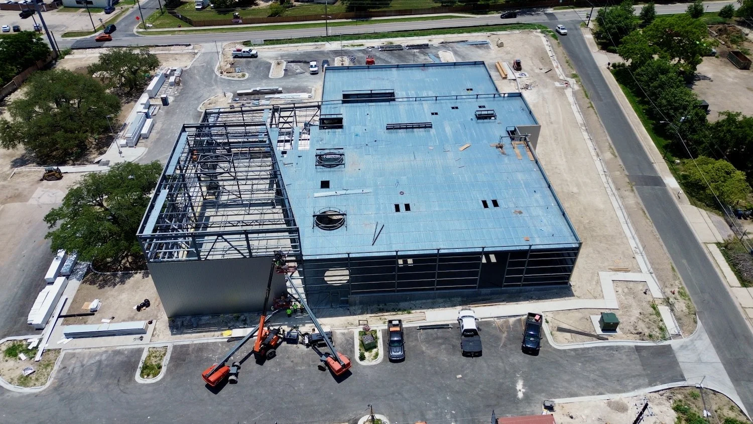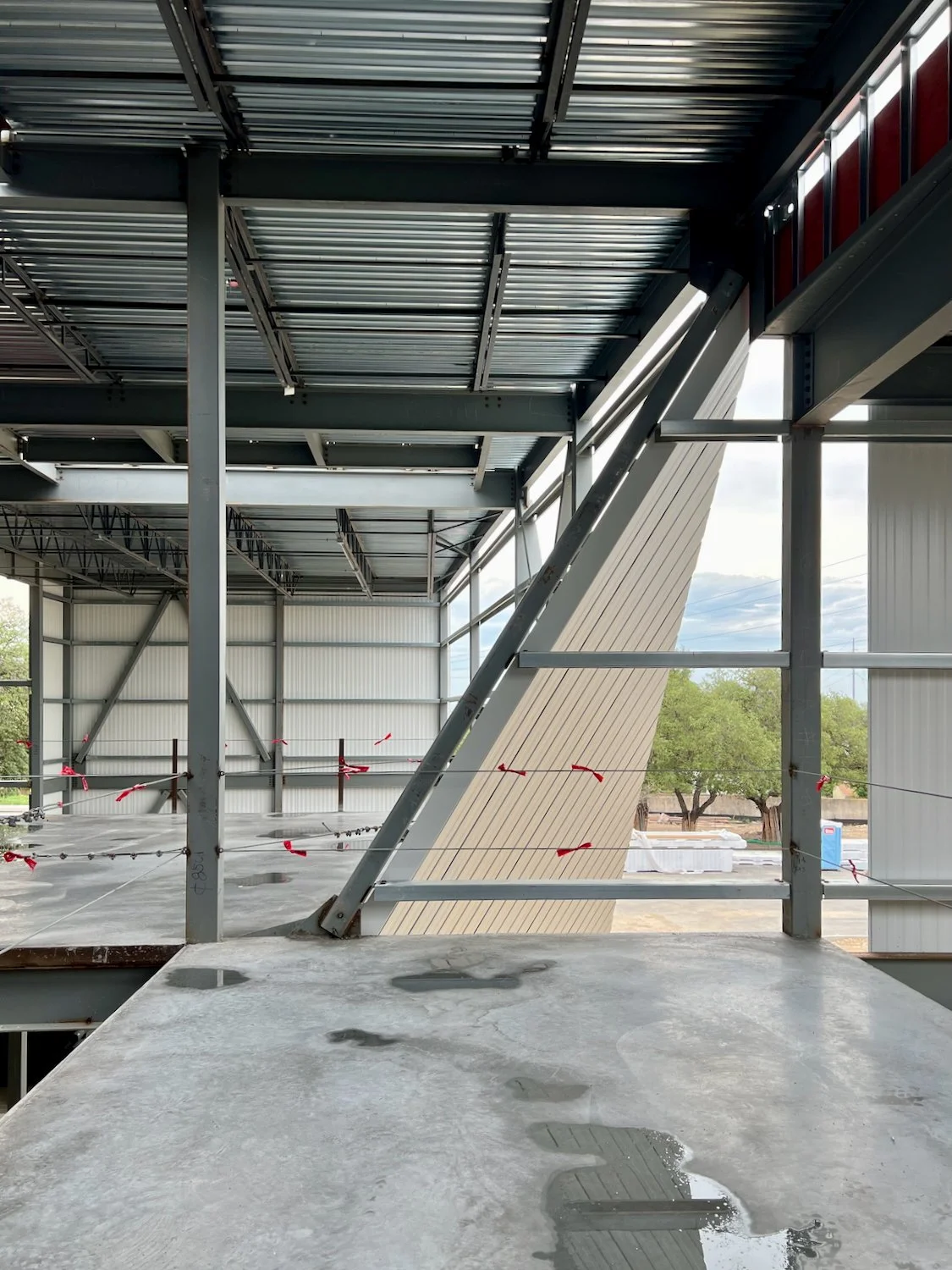 Crux South, the fourth Crux location, replaces the original South Congress gym with a purpose-built facility that merges climbing, community, and daylight. A central courtyard anchors the project, connecting the climbing gym, café, and offices in a campus-like arrangement. Inside, a mezzanine ties together training, bouldering, and social zones—adding vertical variety while preserving visual continuity. Large circular skylights mark the space with dramatic shafts of light, creating an architectural moment that reinforces Crux’s identity around movement and energy. Generous daylight and shaded outdoor space reinforce the indoor-outdoor atmosphere that has become part of Crux’s ethos.