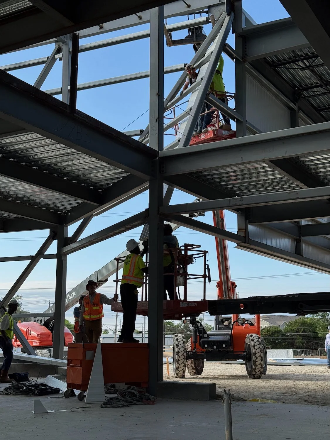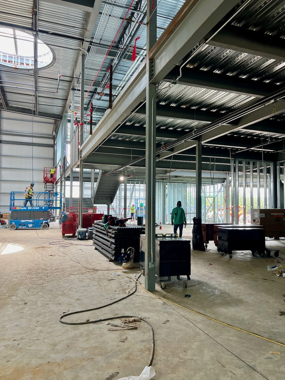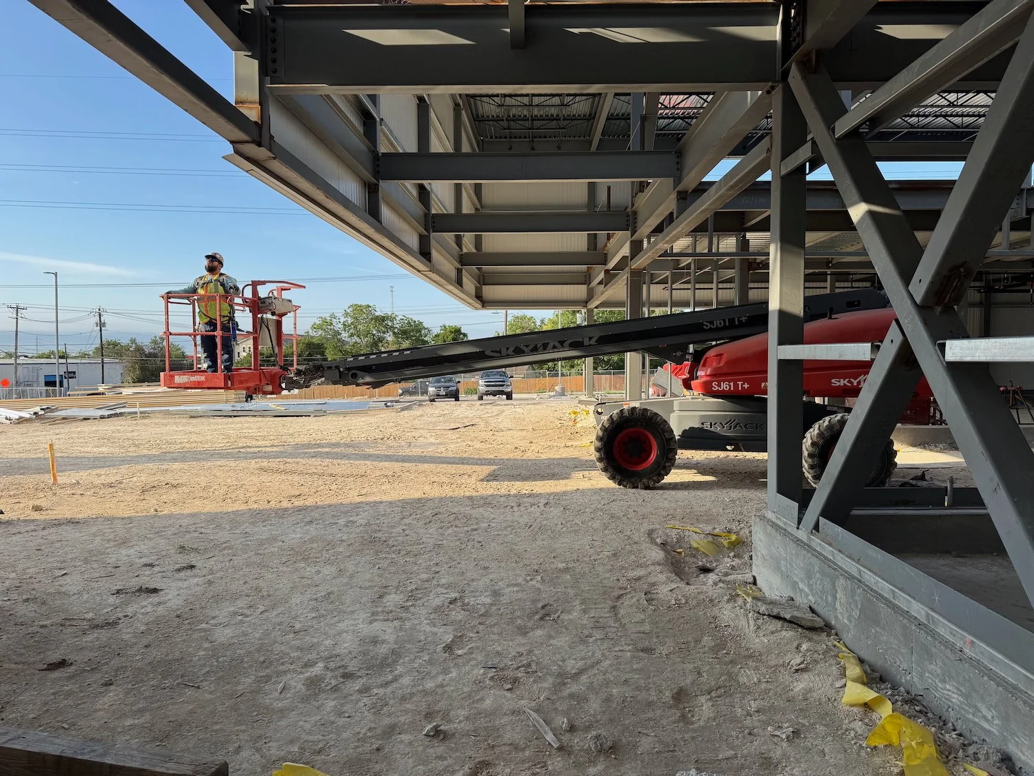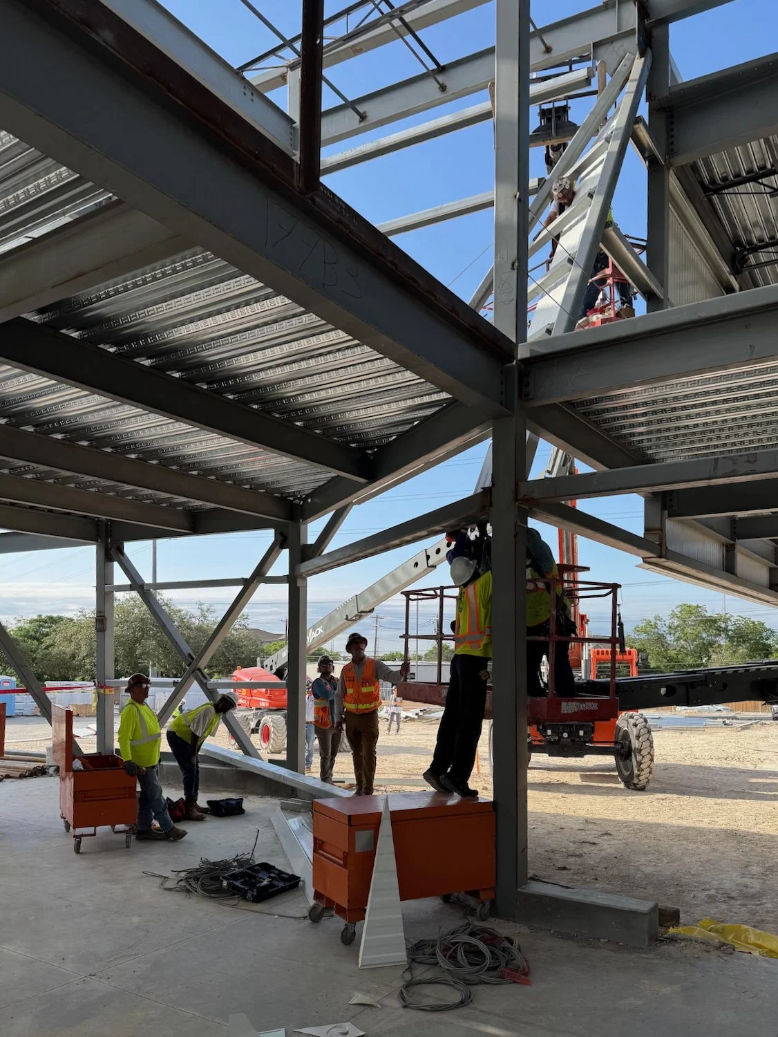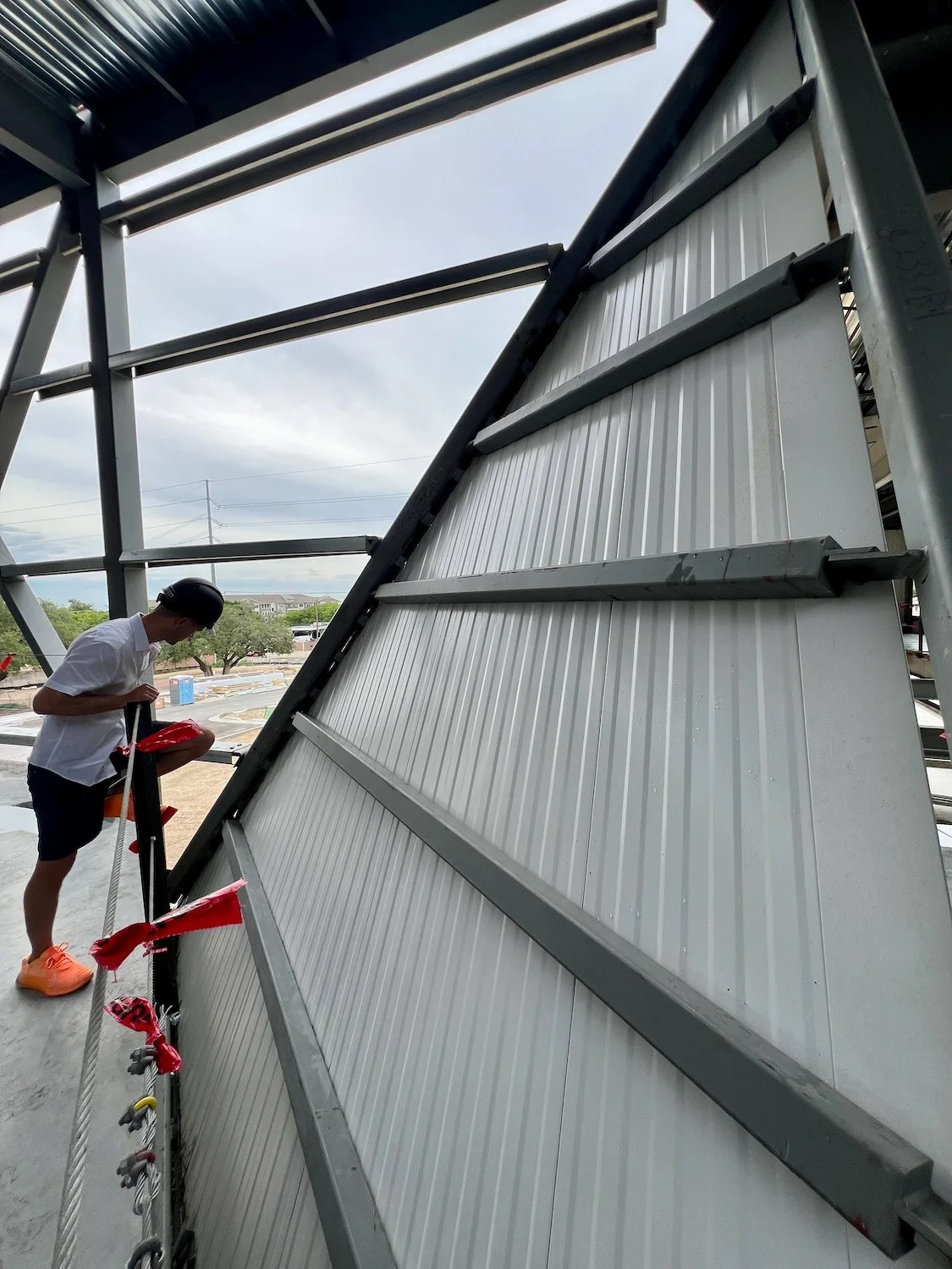 Crux South, the fourth Crux location, replaces the original South Congress gym with a purpose-built facility that merges climbing, community, and daylight. A central courtyard anchors the project, connecting the climbing gym, café, and offices in a campus-like arrangement. Inside, a mezzanine ties together training, bouldering, and social zones—adding vertical variety while preserving visual continuity. Large circular skylights mark the space with dramatic shafts of light, creating an architectural moment that reinforces Crux’s identity around movement and energy. Generous daylight and shaded outdoor space reinforce the indoor-outdoor atmosphere that has become part of Crux’s ethos.