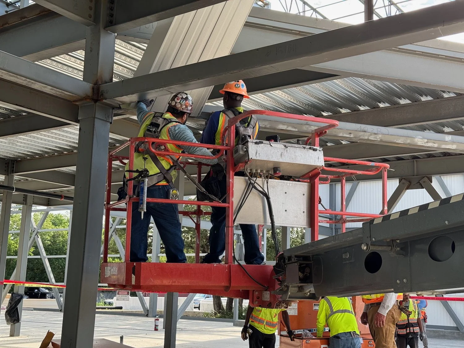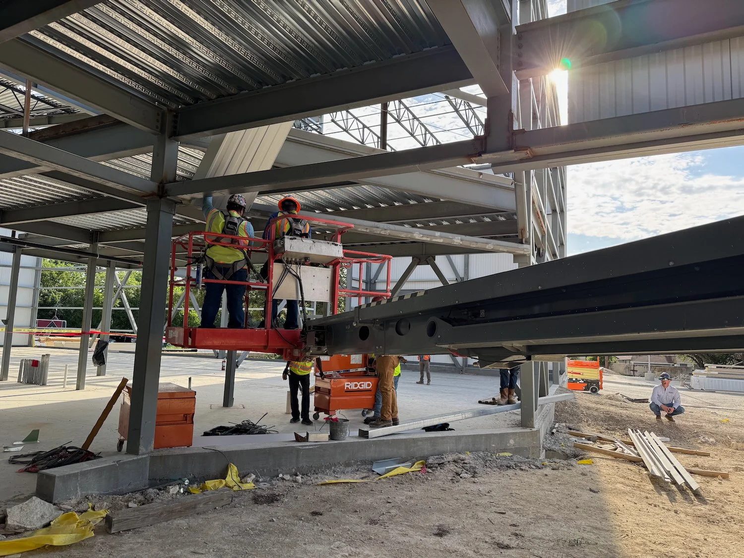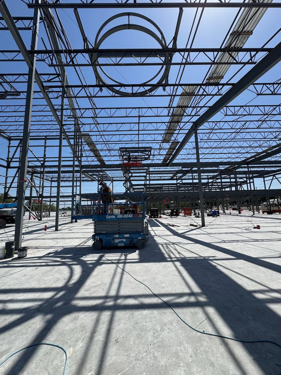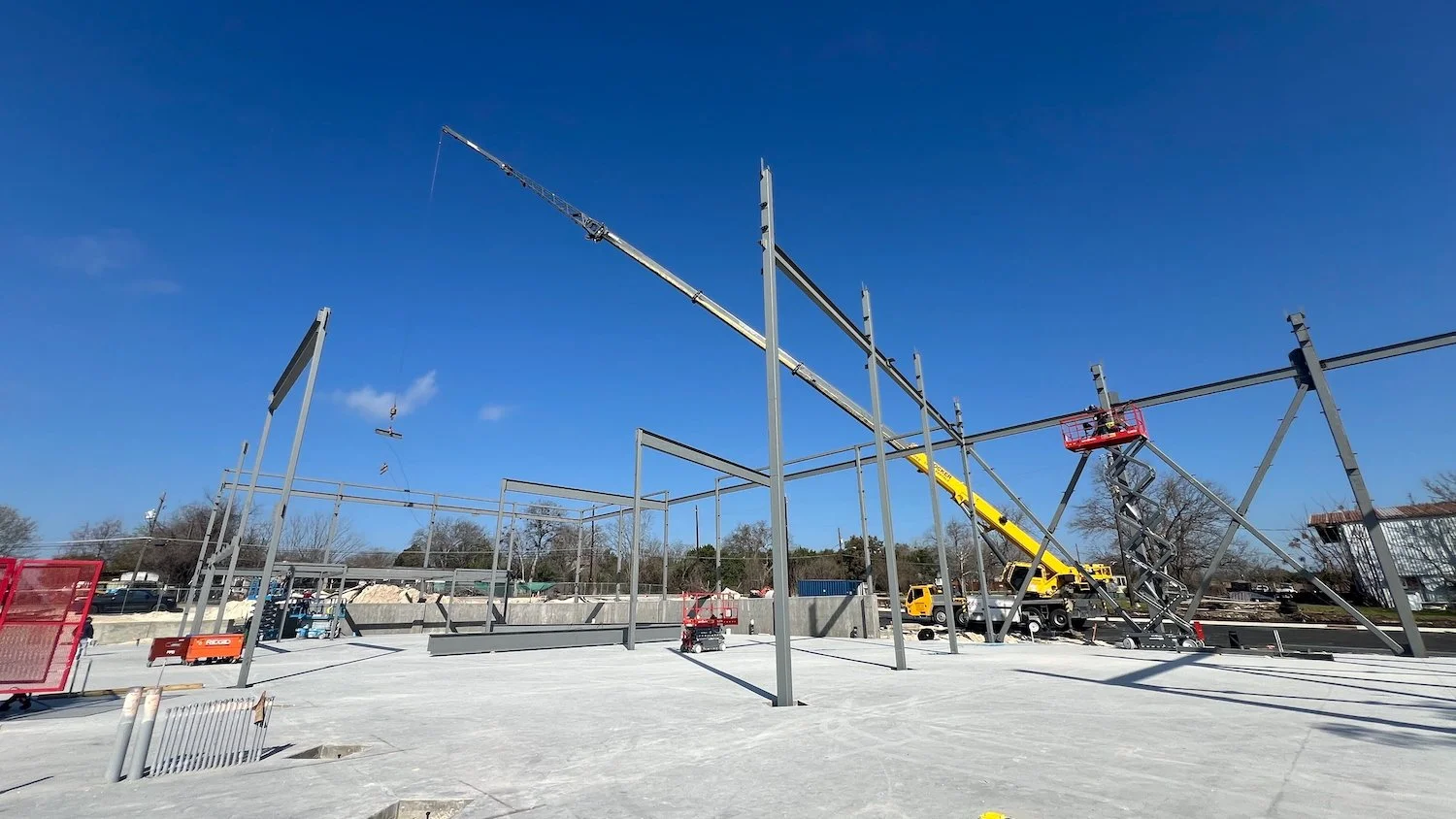 Crux South, the fourth Crux location, replaces the original South Congress gym with a purpose-built facility that merges climbing, community, and daylight. A central courtyard anchors the project, connecting the climbing gym, café, and offices in a campus-like arrangement. Inside, a mezzanine ties together training, bouldering, and social zones—adding vertical variety while preserving visual continuity. Large circular skylights mark the space with dramatic shafts of light, creating an architectural moment that reinforces Crux’s identity around movement and energy. Generous daylight and shaded outdoor space reinforce the indoor-outdoor atmosphere that has become part of Crux’s ethos.