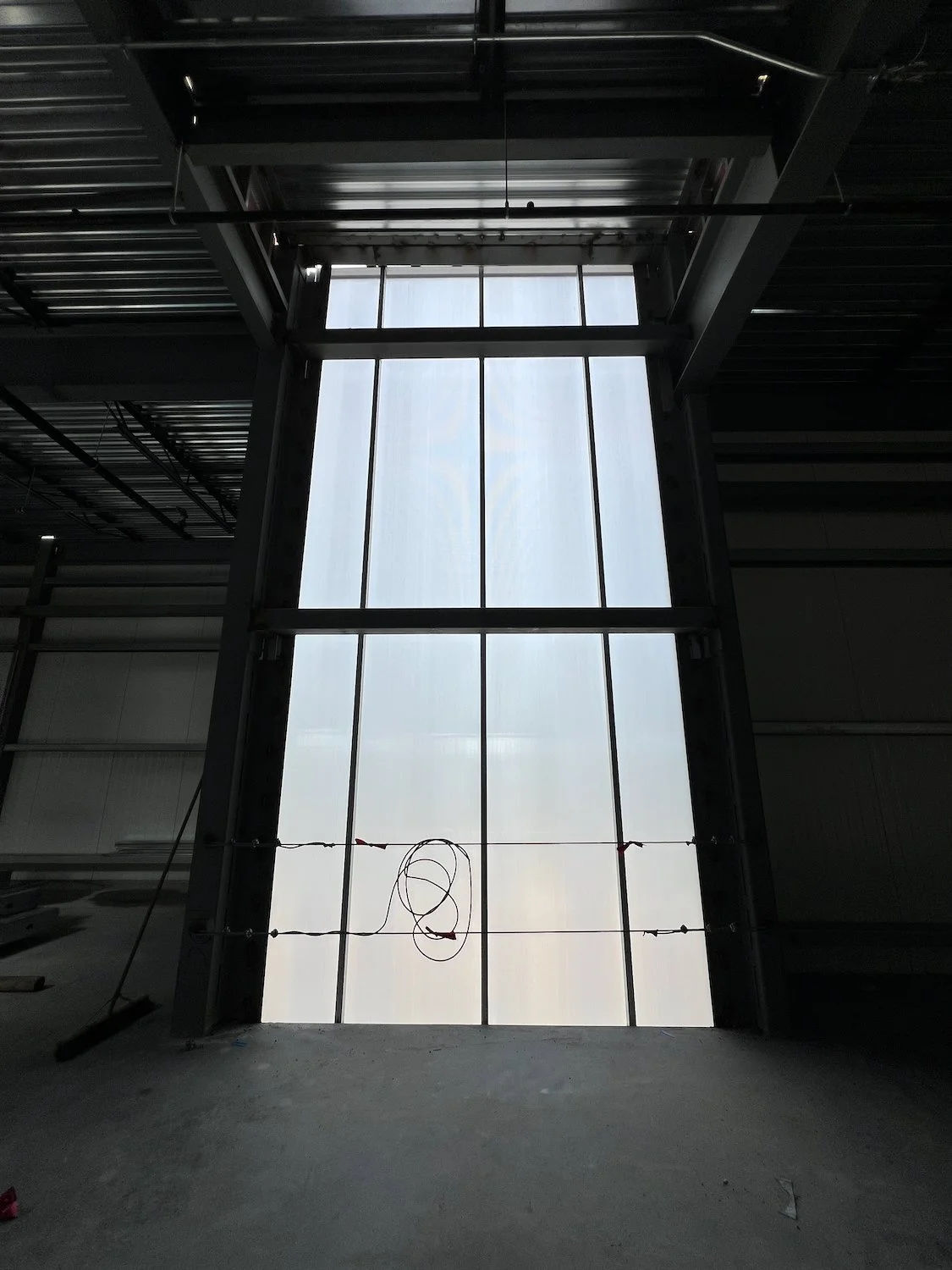 A long and slender skylight washes the yoga studio wall with daylight—creating a serene, naturally lit atmosphere for movement and reflection.